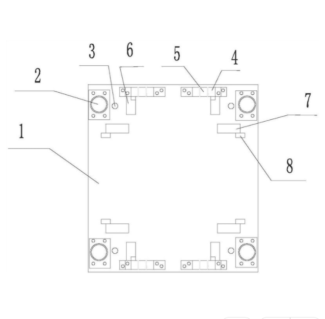 本实用新型提供一种用于施工升降机标准节方框的拼焊工装,属于建筑机械的工装模具领域,包括底板、定位轴、固定限位装置、限位装置、顶出机构和支撑脚,支撑脚设置在底板的底部,定位轴设置在底板的上端,四个定位轴构成方框结构,定位轴与定位轴之间的框型线上设置有固定限位装置或者限位装置,底板上设置有顶出孔,顶出孔设置在定位轴的内侧,顶出机构设置在底板的底部,顶出机构穿过顶出孔顶出焊接好的方框。该拼焊工装投入使用后,可将方框工件整体装配固定焊接,简单便利,解决无定位焊接造成的尺寸波动,提高了工件的尺寸精度,确保工件的尺寸稳定性。采用顶出结构的取件方式,焊接后将踏板踩下顶出工件,实现工件快速取出的目的