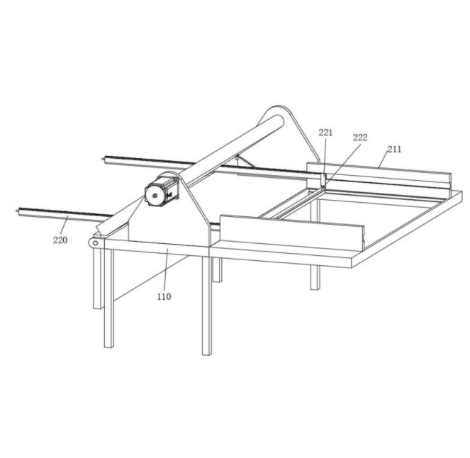 本实用新型涉及一种折弯装置,具体地说,涉及一种通风管手动折弯装置。其包括折弯机构和设置在折弯机构一侧的限位机构,所述折弯机构包括安装台,所述安装台一侧的两端设置有固定板,两个所述固定板之间转动设置有连接板,其中一个所述固定板的侧壁安装有第一电机,所述第一电机的输出轴贯穿固定板并与连接板的一端连接,该通风管手动折弯装置中,通过设置的限位机构,盖板和滑板将板材的一端夹紧,推动传动杆,传动杆通过传动板带动盖板移动,盖板移动带动板材和滑板移动,以便于对板材的移动进行限位,解决了由于板材较大,导致工作人员不能快速的对板材折弯处进行调节,容易导致折弯处不在一条直线上的问题。