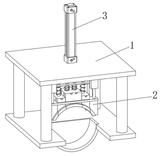 本实用新型涉及通风阀门外框生产技术领域,具体地说,涉及一种通风阀门外框手动折弯装置。其包括安装架和设置在安装架内部用于对外框进行按压的挤压装置,安装架包括上板和底板以及固定在上板、底板之间四角处的支撑柱,底板的中部位置安装有呈半圆形的模型块,模型块一侧的底板上开设有放板口,挤压装置包括主动装置以及设置在主动装置内部的中压架,中压架的两侧设置有侧架。本实用新型通过设置的中压块首先对板进行按压,在板被按压的过程中,主动块带动侧块对板的进行辅助定位,使板在被按压呈弧形的过程中,挤压装置对板进行分段式定位挤压,使不会出现板向外的蹦出的情况,提高装置使用的安全性。