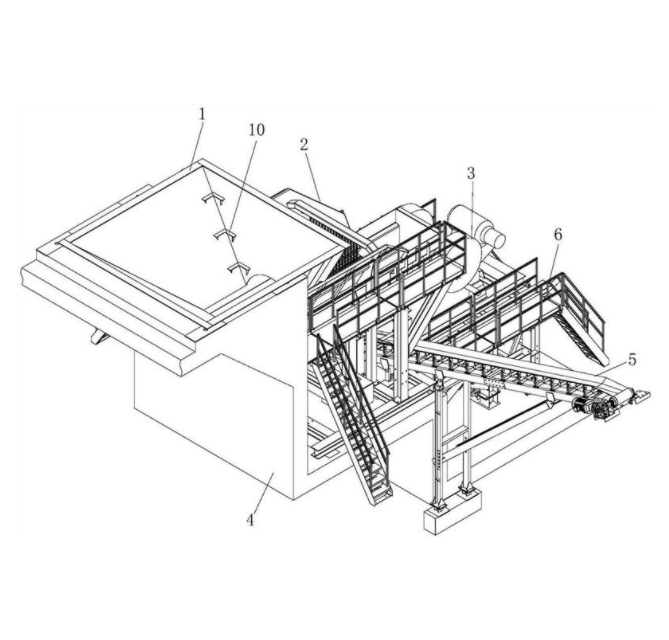 本实用新型公开了一种固定式给料破碎机组设备,所述给料破碎机组设备包括下料仓、振动给料机组、破碎机组和呈阶梯状的基座,在基座的下端表面设置所述破碎机组,在破碎机组的接料口后上方且位于基座上固定所述振动给料机组,在基座设置有向振动给料机组一侧向下倾斜的安装槽,在安装槽内匹配安装有下料仓,所述下料仓的出料口与振动给料机组的入料口衔接,在振动给料机组的下方设置有泥料输送带。本实用新型的破碎机组在水平振动筛分和喂料时,不仅能除石料中附着的泥砂以及泥料粉,并对泥料粉进行回收和充分利用,还可以为破碎机组连续均匀的喂料,避免破碎机组的受料口堵塞。