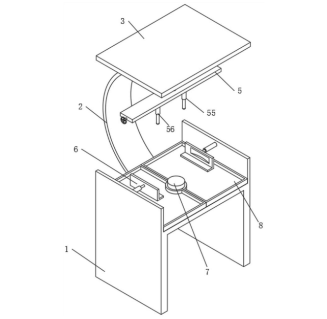 本实用新型涉及通风管法兰技术领域,具体地说,涉及一种通风管法兰冲孔装置,包括工作台,工作台上端设有对称的固定件,工作台一侧固定设置支撑板,支撑板上端固定设置顶板,顶板下表面开设竖向的第一滑槽,第一滑槽与第二滑槽连通并交叉设置,第二滑槽横向开设在顶板下表面,第一滑槽与第二滑槽均与滑块滑动连接,滑块下端与气缸相连,气缸的伸缩端与电机的底部相连,电机的输出轴与调节板上表面的转轴相连。本实用新型,通过固定件将法兰固定,提高法兰的稳定性,将法兰固定后,通过电机带着调节板转动方向,利用第一冲孔桩与第二冲孔桩对法兰进行冲孔,全程只需要对法兰固定一次,可对法兰各个方位进行冲孔作业。