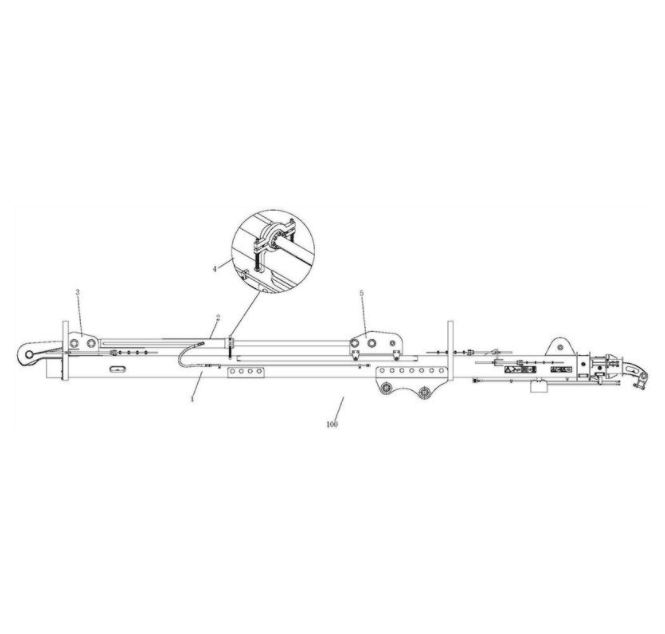 本实用新型公开了一种伸缩臂长行程油缸的柔性固定结构,所述固定结构包括设置在伸缩臂的主筒臂外壁上用于支撑固定小的转动支撑机构、柔性固定机构和滑动支撑机构,其中,长行程油缸的后端通过转动支撑机构连接在主筒臂的后端外壁上,长行程油缸的前端通过柔性固定机构连接在主筒臂的中部外壁上,长行程油缸的活塞杆端部通过滑动支撑机构滑动设置在主筒臂的中部与前端部之间的外壁上。本实用新型能对长行程油缸产生的柔性弹力不断进行调节,使长行程油缸进行作业时,长行程油缸所产生的柔性弹性力可在一定范围内通过进行抵消,减少了油缸的磨损,避免了油缸钢套及密封结构受到损伤破裂,大大提升了油缸使用寿命。