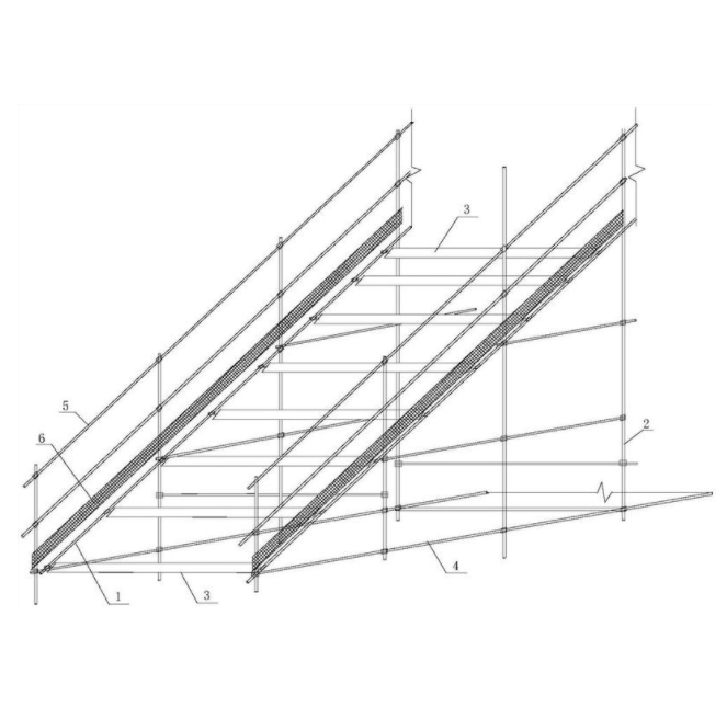 本实用新型公开了一种新型钢管脚手架上下人行斜道踏步装置,包括两根倾斜平行布置的梯梁,在每个根梯梁的上端与下端之间的外侧壁连接有竖直的脚手架立杆,在两根倾斜平行的梯梁之间水平连接设置有多个踏步组件,所述踏步组件包括踏步支撑框、支撑连接管和抱紧座组件,所述抱紧座组件可拆卸连接在梯梁上,在所述踏步支撑框的两端横向贯穿固定连接在支撑连接管内,该支撑连接管的另一端通过抱紧座组件固定在梯梁上。本实用新型的踏步装置的承重能力和整体稳定性较好,能大大提高施工效率及施工安全性,拆装非常方便,便于周转使用。