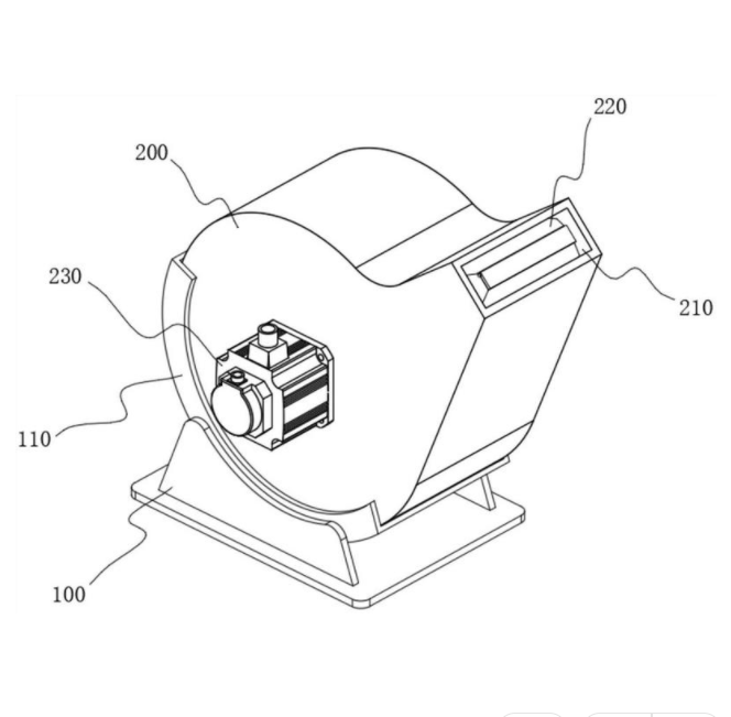 本实用新型涉及一种吹料机,具体地说,涉及一种防粉尘倒吸的吹料机。其包括底座和吹风罩,所述底座设置在吹风罩的底部,所述吹风罩的外侧设置有电机,所述电机的输出端连接有负压扇,所述吹风罩的外远离底座的一侧设置有出风口,所述出风口内设置有防倒吸件,所述防倒吸件包括防倒吸罩,所述防倒吸罩的外侧设置开口,所述开口上设置有防尘板,所述防尘板与开口的顶沿转动连接。本实用新型中通过设置的防尘板受自身重力作用与开口贴合,然后对其进行密封,防止外界粉尘倒吸进入到吹风罩内,从而解决因风力不足导致粉尘倒吸的问题。