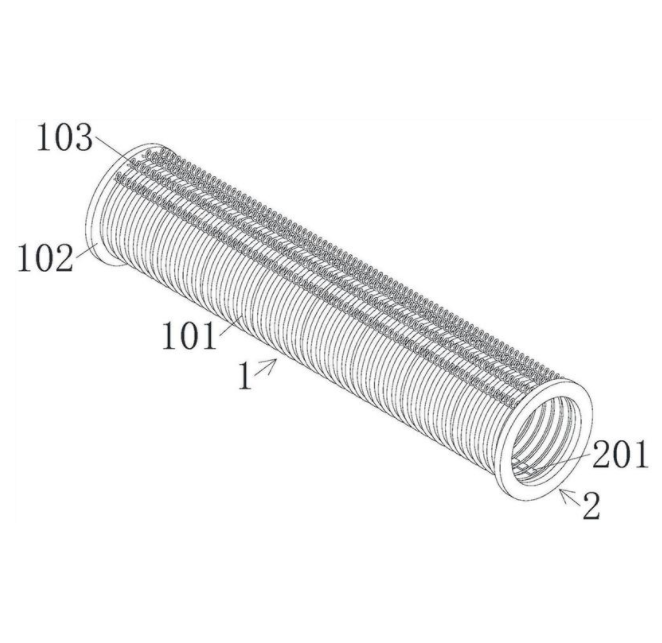 本实用新型涉及一种高效散热型电力通讯管,包括主管和换气结构,其中主管的内部设置有换气结构;主管包括隔离弹簧和通孔,隔离弹簧的相对下方设置有通孔;换气结构包括升孔、内气室和气孔,内气室的两端设置有气孔,内气室的一侧与升孔互通。本实用新型的电力通讯管结构简单,上方设置有弹性缓冲弹簧,可以实现对上方硬物的阻挡并保留其本身的特性,且内部设置有回形换气结构,可以更有利于避免泥水的倒流。