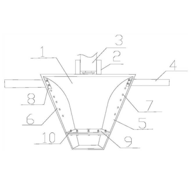 本实用新型提供水沟开挖一次成型设备,属于水沟开挖设备领域,包括斗背板、连接头、两侧平板、斗右侧边板、斗左侧边板和底刮板,连接头设置在斗背板的顶部,连接头与外部设备臂连接,斗右侧边板和斗左侧边板分别设置在斗背板的两侧,底刮板设置在斗背板、斗右侧边板和斗左侧边板的底部。通过设置可拆卸设置的两侧平板,可以自由的调整整个装置所需要挖的深度和宽度的需求,当深度不够时,可以设置可拆卸底刮框增加深度,当底部需要的宽度较大时,可以调节两侧平板,调整深度,当底部宽度需要的较小时,可以增加可拆卸底刮框和调节两侧平板进行满足开挖的深度和宽度的需求,一个设备可以满足多种不同深度宽度水沟的开挖,利用非常的高。