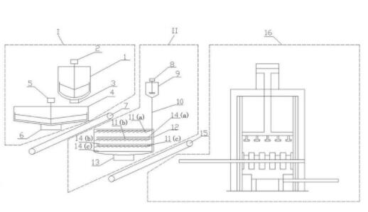 本实用新型公开了一种铝电解槽废耐火材料制成免烧砖的制备系统,属于铝电解槽废耐火材料处理领域。制备系统包括搅拌系统、堆浸喷淋系统和成型系统,所述搅拌系统、堆浸喷淋系统和成型系统从左到右依次设置,所述搅拌系统和堆浸喷淋系统之间通过第一输送设备连接,所述堆浸喷淋系统和成型系统之间通过第二输送设备连接。本实用新型可对无害化处理后的废耐火材料进行进一步处理,解决处理后的废耐火材料仍为危废且未得到有效利用的问题,实现资源化利用,具有显著的环保、经济效益。