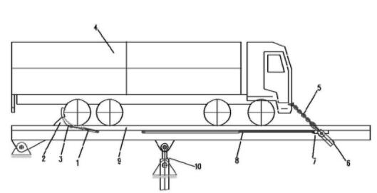 本实用新型公开了一种液压翻板机的车辆锁紧装置,包括限位装置、锁紧装置、移动装置和举升装置,所述举升装置设置在翻板机中部的下方并与翻板机铰接,所述限位装置固定设置在翻板机的中后部限制车辆后轮的位置,所述锁紧装置设置在翻板机的前端靠近车头的位置,所述移动装置设置在翻板机内并与锁紧装置连接控制锁紧装置的移动。本实用新型能够对不同型号及长度运输车起到锁紧限位作用,有效防止车辆在翻板机举升过程中下滑,同时提高翻板机安全性和稳定性。
