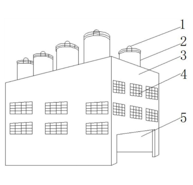 本实用新型公开了一种封闭式环保高效无人配料系统,包括配料房,所述配料房的顶部设置有配料罐,所述配料罐的内部通过轴承转动安装有搅拌轴,所述搅拌轴的外侧表面环绕设置有搅拌桨,所述搅拌轴的顶端贯穿配料罐固定安装有电机。该一种封闭式环保高效无人配料系统,可将混凝土生产加工需要的骨料放置到配料罐内部,通过电机带动搅拌轴和搅拌将进行现场充分搅拌,可根据需要通过导料管添加到搅拌泵车内部,通过重力传感器对添加量进行称量,并且通过控制器控制计量阀启闭对添加量进行精确把控,通过显示屏进行数据的显示,大大提高了配料的自动化程度和精确性,避免了大量设备的投入使用,大大提高了配料系统的环保性。