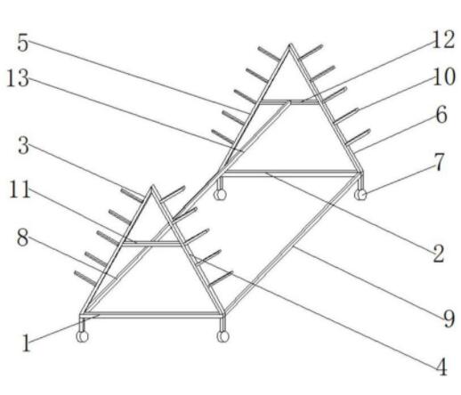 本实用新型公开了一种简易可移动的液压油缸存放架,包括第一底架横向梁,所述第一底架横向梁的一侧固定安装有第二底架横向梁,所述第一底架横向梁的顶部两端分别固定安装有第一竖向架体斜梁和第二竖向架体斜梁。该一种简易可移动的液压油缸存放架,在进行日常使用的过程中,通过竖向架体斜梁由两条钢结构材料对焊组成,其角度和长度可调,钢结构材料的大小和种类可调,通过改变上述钢结构材料、长度、和角度,可实现存放架存放不同数量的液压油缸,特别是有油缸数量较多需要维修时,能够分门别类的将不同厂家的油缸、已修好和维修好的油缸快速区分开来,较好的解决了液压油缸存放问题。