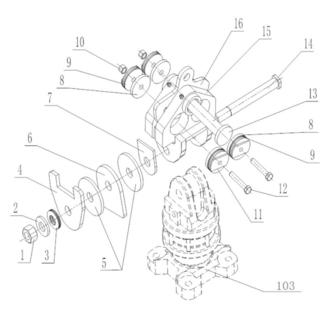 本实用新型公开了一种林业机械用减摆机构,包括连接座,设置于连接座上的第一减摆机构及第二减摆机构,连接座中部开设有沟槽,在连接座轴线方向上开设有上通孔,在垂直于连接座轴线的方向上开设有下通孔;第一减摆机构通过下通孔与连接座连接,第二减摆机构通过上通孔与连接座连接。本实用新型通过连接座、第一减摆机构及第二减摆机构,使得安装回转马达属具的摆动幅度变小,大大降低回转马达和属具因碰撞而损坏的风险,同时,减摆的幅度可以根据实用工况和操作者的习惯来进行调节,提高了属具工作的准确性,从而提高作业效率。