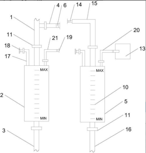 本实用新型公开了一种带有备用管路的血液透析用新型静脉回路管,包括主回路管和备用回路管,主回路管上设有主静脉壶;所述主静脉壶的上、下两端分别设有主进液管和主出液管,在主进液管上设有侧进液管,侧进液管的末端设有接口;所述备用回路管设有备用静脉壶,备用静脉壶的上、下两端分别设有备用进液管和备用出液管;在备用进液管的末端设有可与接口连接的鲁尔接头;所述主静脉壶和备用静脉壶的内部结构相同。本实用新型的备用回路管结构简单,降低了原装静脉管路中静脉壶凝血导致血液无法回输导致血液丢失现象的产生,提升了便于操作人员的操作以及病人治疗使用,具有良好的实用性。
