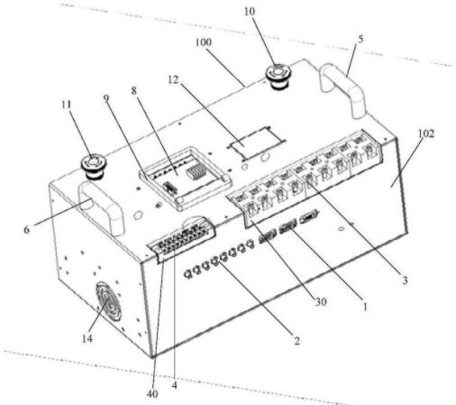 本实用新型公开了一种三相变流器实验控制箱结构,包括箱体、设置在箱体内的CPU核心控制板、信号采集控制板和功率控制板,在箱体的前、后两侧设置有可拆卸的前盖板和后盖板,在所述箱体内的底部设置所述功率控制板,在功率控制板的正上方且在述所箱体顶部的内壁上设置所述信号采集控制板,在所述箱体的内部顶端设置向外伸出设置所述CPU核心控制板,所述信号采集控制板和功率控制板与所述CPU核心控制板电气连接。本实用新型的箱体结构采用高集成及电路简约化模块化设计,调试方便,实验检测简单,散热性能好,也极大方便了设备维护维修,设备用途多样化,可作为高校的教研设备。