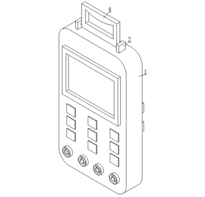本实用新型公开了便携式轨道电路在线监测记录仪,涉及记录仪技术领域,包括记录仪本体,记录仪本体硬件部分包括锂电池供电模块、传感器模块、信号放大模块、数据处理模块和蓝牙模块,记录仪本体软件部分包括手机端APP应用程序和PC端波形查看程序的开发;记录仪本体的端部设置有可旋转的把手,把手用于携带记录仪本体,记录仪本体的背面设置有对称的旋转锁紧组件,旋转锁紧组件包括支脚,旋转锁紧组件用于支脚旋转,并对记录仪本体进行支撑,旋转锁紧组件还用于对支脚进行收纳;这样设计的目的是实现了对轨道电路25Hz、50Hz及ZPW?2000系列轨道的高频信号电压值、电流值在线测量功能,所有检测到的电压和电流值可以同时显示在仪器液晶屏上,清晰直观。