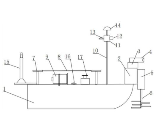 本实用新型公开了一种无人清理船。无人清理船包括船体,船体的前侧安装有云台架,云台架上设有云台,在云台的前侧设有摄像头,云台架的前侧且位于云台的下方设有清理机构,船体上安装有电源支架,电源支架上设有电源机构,船体上且位于电源机构的下方设有涵道风扇,船体上安装有支杆,支杆上设有安装架,安装架的前侧设有传输机构,安装架的后侧设有警示灯,安装架的上侧设有导航机构,船体的后侧设有信号天线,船体的两侧和前侧均设有避障传感器,船体内还设有控制器,云台、摄像头、导航机构、涵道风扇、警示灯、清理机构、信号天线和避障传感器均与控制器连接。本实用新型的。