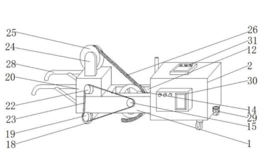 本实用新型公开了一种贴缝设备,包括底座,所述底座的一侧设置有清洁组件,所述底座的内部开设有贴缝槽,所述贴缝槽的内部贯穿活动安装贴缝轴,所述贴缝槽的内部对应贴缝轴的表面固定套接有贴缝轮,所述底座的底部表面开设有碾压槽,所述碾压槽的内部活动安装有碾压轮,所述底座的顶部固定安装有动力箱,所述动力箱的内部固定安装有第二电机。该一种贴缝设备,在进行日常使用的过程中,通过启动第一电机带动毛刷转动对裂缝进行清扫,通过启动吸风机将灰尘吸入集尘箱,通过滤网过滤阻隔在集尘箱中统一处理,避免灰尘扬起影响工作人员健康和污染环境,提高了贴缝胶的粘贴效果。