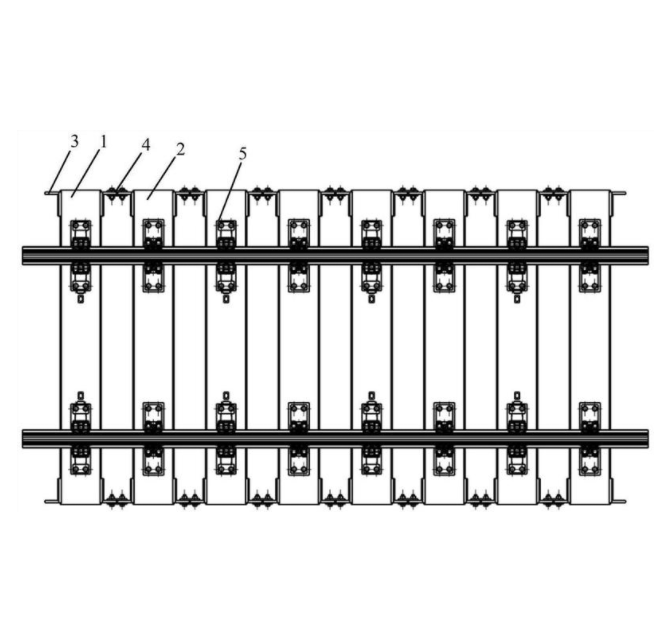 本发明公开了一种铁路用超偏载检测装置轨枕机构。机构包括轨枕A、轨枕B、压力传感器、B枕垫板和连接组件,在轨枕A与轨枕B两端之间分别通过连接组件连接,轨枕A和轨枕B两端上端面均设有预埋底座,压力传感器、B枕垫板置于相应轨枕预埋底座上。本发明使整个轨枕连接为一个整体,既保证了轨枕间距又加强了轨枕基础的承载稳定性,有利于提高超偏载设备的检测精度,且两种型号的轨枕可以通过一次开模完成铸造,减少重复开模的繁杂,提高了标准化程度;在轨枕A内部预埋穿线管,传感器信号线缆可以通过该穿线管敷设,既对线缆起到很好的保护作用,也提升了线路整体整洁美观度。该轨枕机构设计不影响铁路专用大机捣固,更便于线路日常维护工作。