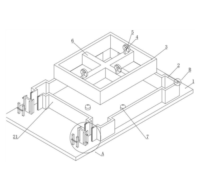 本实用新型公开了一种加装电梯井模块生产模具,涉及电梯井生产模具领域,包括工作台、内模板和外模板,工作台上设有便于安装或拆卸内模板和外模板的拆装结构,内模板上固定连接有横支撑梁,横支撑梁的两端均固定连接内模板内侧面,拆装结构包括定位销,定位销固定连接在工作台上,横支撑梁对应定位销位置开设有定位孔,定位销的尺寸大小与定位孔的尺寸大小一致,内模板上设有吊装内模板的吊装组件,拆装结构还包括外模板一体成型的衔接部,拆装结构便于工作人员对模板的定位,避免模板之间的角度发生偏差,同时便于工作人员对模板的拆装,从而减少工作人员的劳动量,提高了工作人员的劳动效率。