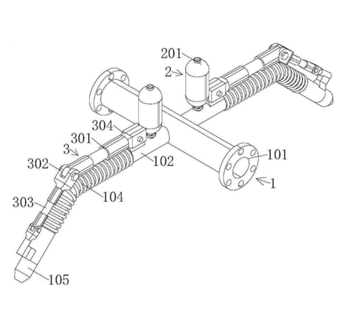 本实用新型涉及一种番茄喷花保果的用具,包括主管、药罐和调距结构,其中主管两侧的上表面与药罐固定连接,药罐的一侧设置有调距结构,调距结构活动连接在主管两侧的上方;药罐包括出液滚球和驱动转板,出液滚球的两侧固定连接有驱动转板;调距结构包括第一液压杆、转接件和第二液压杆,第一液压杆的另一端与转接件活动连接,转接件的一端与第二液压杆固定连接。本实用新型的番茄喷花保果用具结构简单实用,可自由调整喷药距离和角度,可以做到对植株的全方位覆盖,实用性高。