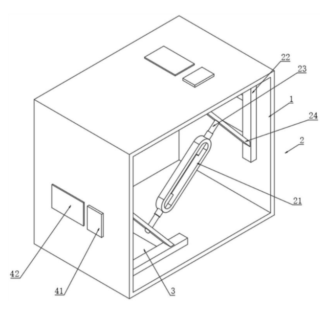 本实用新型公开了一种强弱电箱防变形装置,涉及防变形装置领域,包括电箱箱体和支撑架,电箱箱体上减小电箱箱体所受外力的抗力结构,抗力结构包括受力板和与受力板运动方向相反的抗力板,受力板和抗力板在不受外力状态下高度均高于电箱箱体表面高度,受力板上设有在受到外力时使受力板与抗力板处于同一水平面上的转向组件,抗力结构能够将混凝土给与受力板或者抗力板的压力在反馈给混凝土,从而减少电箱箱体受到的混凝土压力,同时避免电箱箱体直接承受混凝土压力,从而避免电箱箱体受到混凝土压力后发生变形,避免电箱箱体变形影响电箱箱体的正常使用。