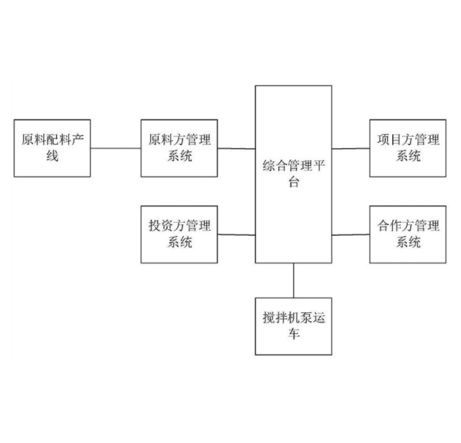 本发明提供一种混凝土生产运输搅拌泵送销售运营一体化方法,属于混凝土搅拌泵送技术领域,实现该方法的系统包括项目方管理系统、合作方管理系统、综合管理平台、搅拌机泵运车、投资方管理系统、原料方管理系统和原料配料产线。本发明搅拌机泵运车提成了现有的混泥土运输车、泵浆设备和搅拌设备,可以节省了现有搅拌站,大大的节约了成本,同时搅拌过程直接在搅拌罐内进行,是一个相对封闭的空间内,使得混凝土搅拌更加环保,并且实现了混凝土线上购买,一线式配送,同时可以对混凝体溯源,使得项目的合作方更加的放心,监管机构也可以更好的进行监管。