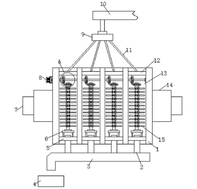 本实用新型公开了一种干法脱硫脱硝系统,涉及烟气处理技术领域,包括吸附塔,所述吸附塔一侧的中间位置处设置有烟气进口,且吸附塔另一侧的中间位置处设置有烟气出口,所述吸附塔的内部开设有多个腔室,且腔室内部的底端安装有底板。本实用新型通过利用驱动电机的驱动可以带动安装杆进行转动,在安装杆的转动下便可以通过主动锥形齿轮带动从动锥形齿轮进行转动,从而可以使得搅拌杆进行转动,通过搅拌杆的转动便可以在腔室的内部进行搅拌,以此可以使得烟气通过和腔室内部的吸附剂进行反应时,加快烟气和吸附剂的反应效率,提高烟气的吸附质量,以此提高本装置的工作效率和质量。