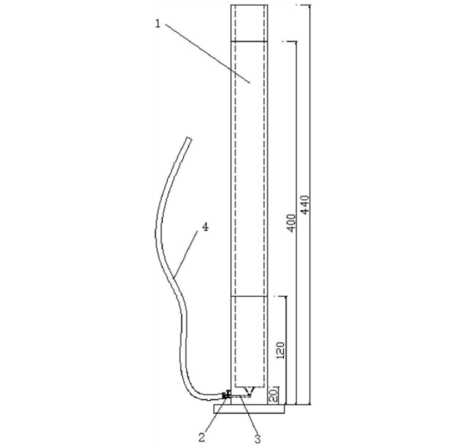 本实用新型公开了一种底部带冲洗孔的砂当量试筒,包括试筒本体、冲洗孔、支管、冲洗孔阀门、连接部件和外接冲洗管,所述试筒本体为中空圆筒且底部设置有加厚层,所述冲洗孔设置在加厚层中将试筒本体内底部与外部连通,所述支管设置在冲洗孔的外部并与冲洗孔连通,所述冲洗孔阀门设置在支管上,所述外接冲洗管与支管连通。本实用新型提供一种底部带冲洗孔的砂当量试筒,解决了细集料砂当量试验冲洗阶段需要插入冲洗管麻烦的问题。