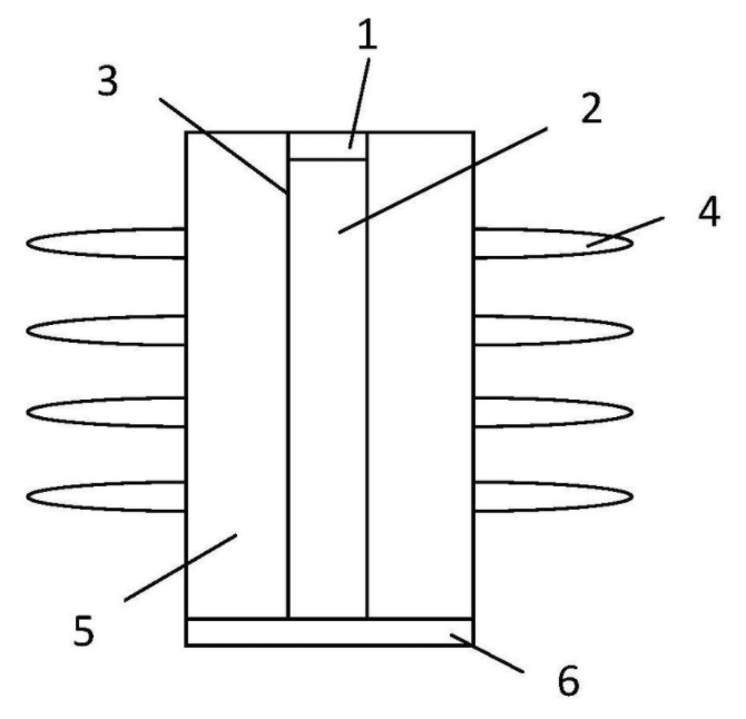 本实用新型公开了一种基于液电效应灭弧防雷装置,属于灭弧防雷技术领域,灭弧防雷装置设置为一个密封管,密封管两端分别设置上电极和下电极密封设置,密封管内设置有绝缘油,密封管的侧边设置有裙边。本实用新型截断电弧迅速,电弧在液体中放电产生液电效应,迅速形成冲击压力波,冲击电弧在刚刚形成之时就立即被截断。冲击电弧重燃被延迟,陶瓷管内的高压破坏了持续放电条件和重燃条件,截断冲击电弧后,重燃击穿时间被大幅度延迟十几到几十微秒以上,雷电流的陡度显著降低90%,电流幅值衰减50%以上。