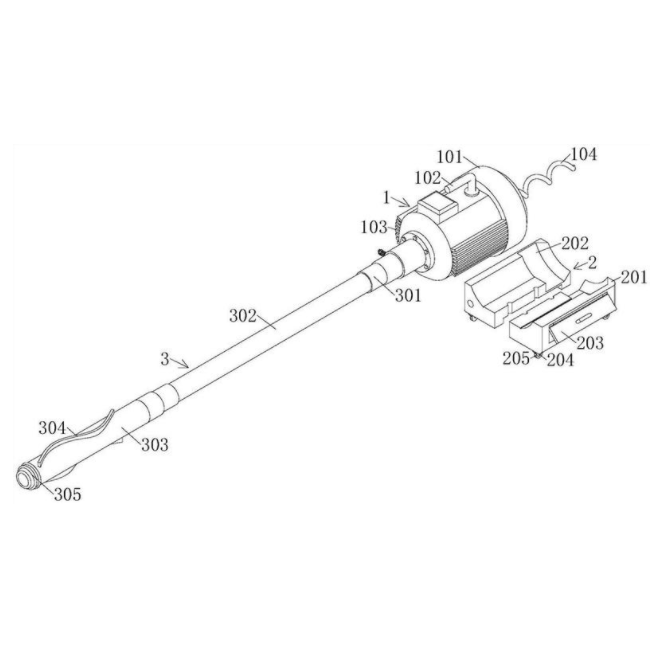 本实用新型公开了一种混凝土振动棒,涉及建筑工程技术领域。本实用新型包括振动器、载车和振动机构,其中振动器的下方与载车卡接,载车包括载体、卡接槽和车轮,载体的内部设置有卡接槽,载体的底部与车轮固定连接,振动器的一端与振动机构固定连接,振动机构包括棒体、流线条和振动头,棒体的侧面固定连接有流线条,棒体的前端与振动头固定连接。本实用新型通过振动器、载车和振动机构,解决了现有振动棒缺少方便移动的结构和效率低的问题。