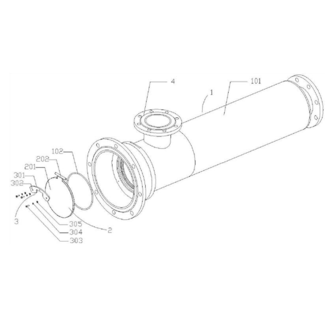 本实用新型公开了一种内嵌圆片式止回阀的复合式消音器结构,包括消音器主体、止回阀主体、固定件,消音器主体包括排气消音器,所述止回阀主体包括阀板,所述阀板呈圆形,该圆形的圆周一侧伸出有安装轴,所述排气消音器顶部内壁设置有安装槽,所述安装轴可转动的设置在安装槽内,所述固定件压设在安装轴表面并与排气消音器固定连接,该固定件为板状结构,该板状结构的一侧为向内的凹口,该凹口的朝向与阀板活动方向相反。本实用新型复合式消音器结构,使排气消音器既有排气消音的功能又有止回阀的功能,解决了阀板开口太大造成阀板的重量与气体压力不均衡导致阀板来回摆动,影响鼓风机气体的顺利排出的问题。
