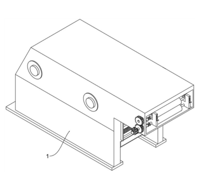 本实用新型涉及印刷技术领域,具体地说,涉及一种双辊对辊式印刷用料牵引装置,包括印刷机,电机的出输端与主动轮转轴的顶端相连,主动轮转轴的底端穿过延伸板连接于第一铰接轴,第一铰接轴穿过调节板连接于第一辊的顶端,第一辊的底端与调节板下端转动连接,调节板上端开设U形槽,U形槽内设有调节块,调节块端部固定连接拧动件,拧动件与凸块螺纹连接,第二辊的两端与凸块转动连接,与第二辊顶端连接的凸块的外侧转动连接于第二铰接轴,第二铰接轴端部与被动轮相连,被动轮与主动轮相啮合,本实用新型,对双辊式牵引装置进行改进,使其可以根据物料的厚度对双辊之间的间隙进行调节,无需根据物料更换牵引装置,节约成本,提高生产效率。