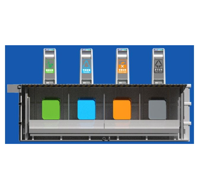 1.本外观设计产品的名称:景观地埋式智能垃圾分类箱。2.本外观设计产品的用途:本外观设计产品用于生活垃圾的景观地埋式智能分类收集。3.本外观设计产品的设计要点:在于图案与色彩的结合。4.最能表明设计要点的图片或照片:立体图。5.请求保护的外观设计包含色彩。