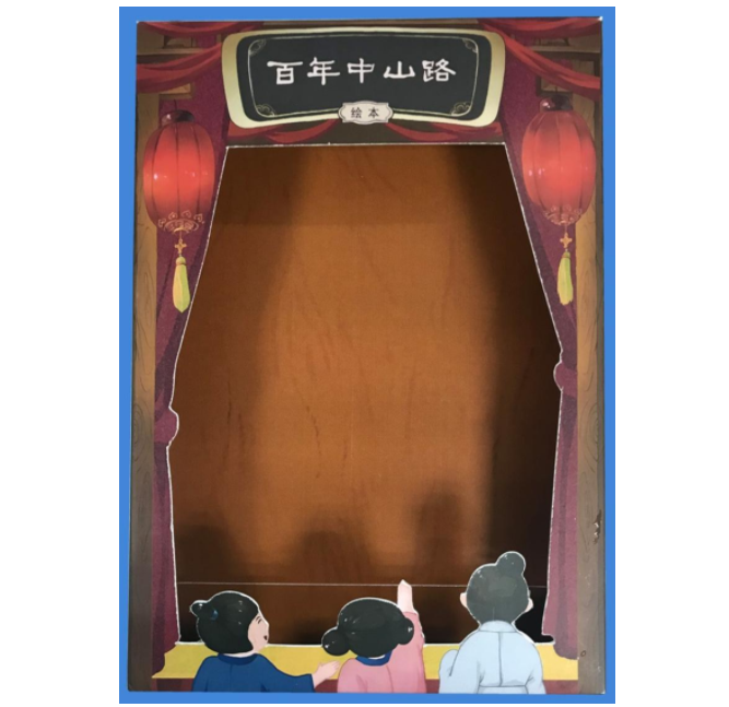 1.本外观设计产品的名称:笔记本盒装封套(百年中山路绘本)。2.本外观设计产品的用途:本外观产品用于包装百年中山路绘本与立体明信片。3.本外观设计产品的设计要点:在于图案与色彩的结合。4.最能表明设计要点的图片或照片:立体图。5.请求保护的外观设计包含色彩。