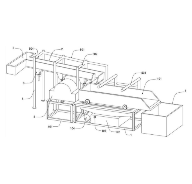 本实用新型涉及过滤设备技术领域,具体为一种沙子过滤装置,包括水槽底座,水槽底座的顶端设置有沥水筛,沥水筛的顶部设置有第二喷淋管,沥水筛左侧顶部设置有过滤槽,过滤槽前后两侧均设置有若干支撑柱,若干支撑柱之间设置有连接管,过滤槽的顶部设置有第一喷淋管,第一喷淋管和第二喷淋管的正下方均开设有若干喷淋嘴,过滤槽底部设置有底板,底板上开设有若干过滤口,过滤口的左右侧壁上均开设有固定凹槽,固定凹槽内安装有滤筛,通过排放阀正上方的第一喷淋管,对经过排放阀处的黄豆及沙子等泥垢进行冲洗,通过水压作用,实现对黄豆上泥沙的分离,水压冲洗分离效果更好,对沙子的过滤更加彻底,同时不会造成黄豆破碎。