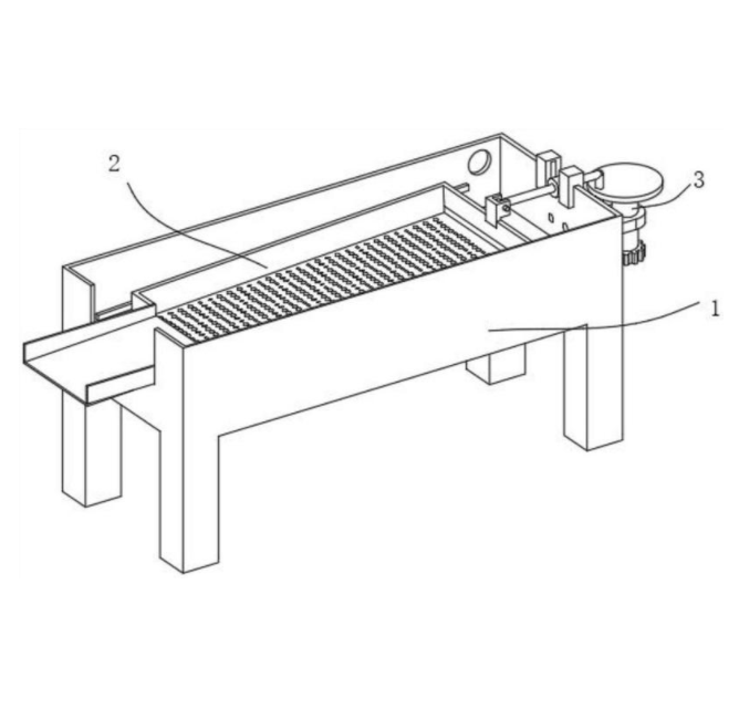本实用新型涉及豆子冲洗技术领域,具体为一种豆子自动冲洗装置,包括筛洗壳和设置在筛洗壳内部的筛洗板,筛洗壳的一侧设有驱动装置,筛洗壳包括筛洗外壳和开设在筛洗外壳内部的筛洗腔,筛洗外壳内部的左右两侧固定连接有固定条,筛洗外壳的一端固定连接有限位块,限位块的内部设有限位槽,筛洗板包括筛洗板壳和开设在筛洗板壳内部的筛洗板腔,筛洗板壳的左右两侧固定连接有若干滑块,筛洗板壳的一端固定连接有铰接架,驱动装置包括旋转轴和固定在旋转轴两端的偏心盘和平齿轮,偏心盘上滚动连接有推拉杆。本实用新型设置了可以沿着滑动槽往复运动的筛选板,将豆子和泥土分离,降低豆子中泥土的含量,方便豆子进行下一步工序。