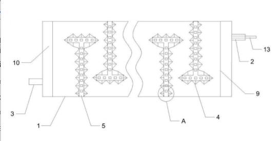 本实用新型公开了一种医疗污水三维吸附消毒装置,包括反应池体,进水管,出水管,活性炭多孔纤维材料组件,框架,活性炭多孔纤维材料片,支撑片,压条,进水挡板,溢流槽,出气孔,曝气装置,消毒管,反应池体右侧壁设有进水管和消毒管,左侧壁设有出水管;反应池体内设有多个活性炭多孔纤维材料组件;所述活性炭多孔纤维材料组件包括“T”型的框架和活性炭多孔纤维材料片;框架表面设有多个支撑片,活性炭多孔纤维材料片覆盖在支撑片末端上,在任意相邻两片支撑片之间还设有压条。本实用新型结构简单,维护方便,可针对低标准建设的小型污水处理设施,尤其是小型分散医疗污水的消毒处理,具有很好的推广应用前景。