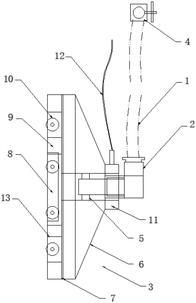 本实用新型公开了一种可移动式粉仓破拱布气头装置,包括气管、气管接头和布气头,所述气管上端设有阀门,所述气管接头连通气管下端,该气管接头与布气头连接,并在布气头内设置进气轴与气管接头连通,所述布气头包括布气头端盖、布气头喷气槽、磁铁、布气头底座和滑轮,所述布气头端连接在布气头底座的一侧并环罩在进气轴的外侧,所述磁铁固定在布气头底座的另一侧,所述布气头喷气槽设置在底座与布气头端盖之间,所述磁铁设置在布气头底座的中部,所述滑轮分布在磁铁四周。本实用新型的破拱装置安装维护简易,破拱效果明显,并可根据现场情况随时调整破拱位置及破拱数量,避免破坏粉仓结构,适用范围广,使用在对粉仓表面要求高的场合。