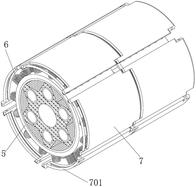 本实用新型公开了一种海上离岸电力输送电缆,涉及电力输送技术领域。本实用新型包括中心加强芯,中心加强芯的外柱面上套接固定六角架,六角架上开设六个通孔,通孔内部嵌入导线,六角架的外侧套接固定内防护层,内防护层的外柱面上套接固定耐腐蚀层,耐腐蚀层的外柱面上固定连接有五组减震弹簧,每组减震弹簧背离耐腐蚀层的一端均固定连接有外防护层。本实用新型通过对导线的外部进行固定连接有多层防护,并且最外层的外防护层采用段连式连接,最大程度的减免了外物对于导线的冲击,避免了损失。