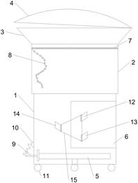 本实用新型公开了一种防污染呕吐物收集装置,包括底座、套筒、收集口,套筒与底座螺纹套接,套筒顶部设有喇叭状的收集口,收集口活动铰接有隔离罩;底座内设有个转盘,底座侧壁上设有活动门;所述套筒内设有一圈磁石环,以及一条由多块小磁石串成的磁石链;所述底座上还设有拨动条,所述拨动条呈“T”型设置,拨动条较宽的一端位于底座内部,另一端水平穿过底座侧壁。所述活动门的自由端边缘分别通过扭力弹簧连接有第一扣板和第二扣板,底座侧壁上通过扭力弹簧连接有第三扣板,3个扣板之间设有橡皮筋。本实用新型结构简单,设计合理,在患者呕吐完后通过橡皮筋自动将收纳袋封好,也方便医护人员或患者家属清理呕吐物,减少不适感。