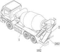 本实用新型公开了一种具有报警功能的混凝土搅拌车,涉及汽车制造技术领域。本实用新型包括防护壳体和L形板,通过在防护壳体的内部设置有第一复位弹簧,第一复位弹簧的顶部固连有支撑板,支撑板的顶部固连有第一电极板,第一电极板一端的顶部固连有连接杆,连接杆的顶部螺纹连接有警报灯,第一电极板一端的上方设置有第二电极板,第二电极板一端的顶部固定连接有中空圆杆,并且设置有L形板,L形板的底部固定连接有横杆,横杆的底部固连有三个第二复位弹簧。本实用新型通过沿竖直方向向下按压L形板,L形板压迫警报灯,利用各部件配合使得第一电极板与第二电极板构成的报警电路形成断路,警报灯没有电流通过,进而不再报警,便于司机作出判断。