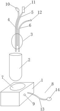 本实用新型公开了一种可调节大小的标本容器负压吸引连接管,包括固定底座、收集管、密封气囊、负压管、气囊管和留液管,所述固定底座的中间设有中空部,该中空部的内侧壁上围绕设置调节气囊,该调节气囊连接有充气装置,固定底座上还设有和放气口一,所述收集管上部开口且呈圆形,所述密封气囊为弹性球囊,所述负压管的下端穿透整个密封气囊且上端设有负压装置连接头,所述气囊管的下端穿透密封气囊侧壁位于密封气囊内且上端连接有充气接头,所述留液管的下端穿透整个密封气囊且上端设有可拆卸的锥形连接管。本实用新型可根据标本大小调节使用不同大小的容器,达到稳妥放置不同规格的标本收集管,且能够轻易留取黏液。