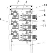 本实用新型公开了一种传动架,属于施工升降机领域,传动架包括传动小车架,传动小车架内设有传动板,传动板前侧设有若干个电动机,在传动板上且位于每个电动机前方均设有减速机,减速机的输出轴穿过传动板并延伸至传动板后侧,减速机的输出轴上设有齿轮,在传动板后侧与齿轮并排设有导轮,在传动小车架上且位于传动板的后侧设有滑轮,滑轮设为多个,在相邻两个电动机之间设有第一电动机托架,第一电动机托架固定连接在传动板上并与电动机抵接,在若干个电动机中且位于最外侧的两个电动机处均设有第二电动机托架,第二托架与传动小车架固定连接。本实用新型的传动架,安全系数高,运行平稳,不会出现强烈抖动,减少意外事故发生,减少工作人员的心里负担。