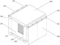本实用新型公开了一种智能人脸测温通道用通道箱,涉及公共卫生技术领域。本实用新型包括底板、隔热板、盖板和防晒布,底板内部开设有第一凹槽,两个隔热板的下端与底板内壁的两侧连接,盖板内部开设有第二凹槽,两个隔热板的上端与盖板内壁的两侧连接,盖板外壁远离隔热板的两侧固定设有铝合金板,铝合金板远离盖板的一侧固定设有铝合金柱,铝合金柱上滑动连接有六个挂钩,挂钩下端固定连接有塑料块,每三个塑料块下端固定连接有一块防晒布。本实用新型通过设置防晒布、塑料块、挂钩、第一螺栓、第一螺母、第二螺栓、第二螺母、第一凹槽和第二凹槽,解决了通道箱内部测温台被太阳直射后温度过高不能正常工作和通道箱不便拆卸的问题。
