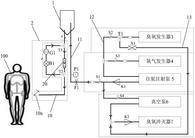 本实用新型公开了一种新型高压高剂量臭氧联合血液滤过装置,包括无菌真空储液容器、血液侧管路、气压侧供应管路和气压侧回收管路,在无菌真空储液容器的输液口上连通有双通路采输血管,在双通路采输血管上并联连接所述血液侧管路,所述气压侧供应管路的供应口和气压侧回收管路的第一输入口通过双通输气管汇集后与无菌真空储液容器的输气口连通,在靠近无菌真空储液容器一侧的双通输气管上设置有第一电磁阀,所述第一三通接头的第二输出端口通过气体回收分支管与所述气压侧回收管路的连通,在靠近所述第一三通接头第一输出端口一侧的输气分支管上设置有第二电磁阀。本实用新型能联合臭氧治疗和血液净化治疗同时进行,从而对血液净化显效更快。