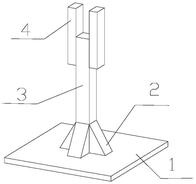 本实用新型公开了一种防止建筑工程临时电缆拖地的简易支架,属于线缆支撑架领域,包括模板底座、三角固定座、木枋立杆和顶部夹杆,木枋立杆底部固定在模板底座上,三角固定座设置在木枋立杆底部的周边并与木枋立杆和模板底座固定设置,顶部夹杆设置在木枋立杆顶部的两边,中间形成存线槽。本实用新型结构简单,加工制作方便,其取材完全来自施工现场废物木料,环保节约,设置的凹型顶槽或者活动弧形轮都可以很好的减少对线缆的摩擦,同时在初始安装线缆时,可以起到的很好的导线的作用,缓冲支撑装置可以两边都线缆起到支撑的作用,可以增加线缆的支撑面,可以更好的把线缆支撑在空中,同时可以增加支撑架之间的距离。
