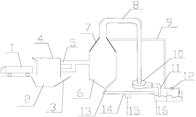本实用新型公开了一种混凝土石料卸货吸收扬尘过滤系统,属于除尘技术领域,包括料坑、粉尘收集罩、灰尘进气管、灰尘清洗灌、水雾喷管、抽气管、循环水管、抽风机、灰层二次清洗管、水泵、清洗水回流槽和积水池,所述粉尘收集罩设置在料坑上,所述灰尘进气管一端与粉尘收集罩连接,另一端与灰尘清洗灌连接。通过设置粉尘收集罩对汽车倒入石料时产生的灰层进行收集,然后统一抽到灰尘清洗灌内进行清洗,达到很好的水雾清洗灰层的效果,同时在抽风机的吹气口处竖直设置在积水池的上方,出来的空气还会与积水池内的水进行接触,达到二次除尘的效果,积水池内的水抽回重复利用,更好的节约水源,减低除尘的成本。
