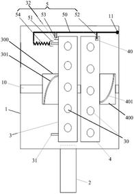 本实用新型公开了一种双盘发条式灭弧防雷装置,所述灭弧防雷装置包括灭弧防雷壳体、灭弧筒、A转盘和B转盘和驱动切换装置,在所述灭弧防雷壳体内水平设置有可转动的中心轴,所述A转盘和B转盘可滑动设置在中心轴上,在A转盘和B转盘的圆周侧壁上均匀设置有多个沿径向方向的用于放置气丸的放置槽,该灭弧筒与A转盘或B转盘上的放置槽接触,在靠近B转盘一侧的灭弧防雷壳体内侧壁顶端上设置有支撑点,在A转盘和B转盘的内部中心位置分别设置有涡卷弹簧,所述驱动切换装置的分别与所述A转盘和B转盘传动连接。本实用新型避免了转盘切换过程中使灭弧筒发生错位移动,提高了双盘切换的可靠性。