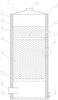 本实用新型公开了一种新型填料塔,包括塔体及设置在塔体内的塔内组件,塔体包括填料段及非填料段,填料段内壁采用端部异型防腐砖衬筑或者所述填料段内壁采用端部异型防腐砖与普通防腐砖交错砌筑而成,填料段内设有填料;塔内组件包括液体分布装置及支撑装置,液体分布装置设置于填料内的上部,液体分布装置连接有进液管;塔体的顶部设置有进气口,塔体的下部一侧设置有排污口及液体出口,塔体的下部另一侧设置有进气口。本实用新型的塔体填料段通过形成不平整表面结构的塔内壁,能有效避免或减少壁流和塔壁气体短路现象,从而有效提高填料塔的分离效率。本填料塔的结构简单、安装方便,且实用性较强。