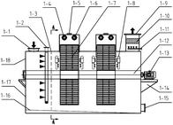 本实用新型公开了一种折流气道筒式转盘除臭装置,包括除臭壳体、除臭转盘、转轴及驱动装置,除臭壳体由上半区壳体及下半区壳体拼装组成,上半区壳体上设置有进气口、除臭转盘及出气口,下半区壳体的底部设置有排液口;除臭转盘的上方设置有喷淋管,除臭转盘的两侧设置有反冲洗管,除臭转盘包括外部框架及内部填料层,填料层由沿水平方向平行布置的多级筒式组合填料组成。本实用新型通过设计多级筒式组合填料及可伸缩式反冲洗管,填料表面挂泥迅速、挂膜均匀且不易堵塞,筒式组合填料内部设置若干挡板对恶臭气体进行多级折流,有效延长臭气在填料层的停留时间,并增大气液接触面积,具有除臭快速、在线清淤简便、耗水电低及运行高效连续等特点。