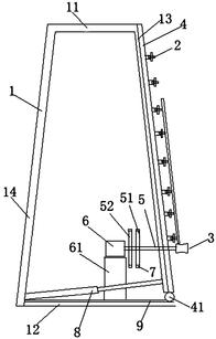 本实用新型公开了一种中空玻璃传送装置,其特征在于:包括支撑架、滚轮、传送轮、传动板面、转轴、电机、传动链、电动推杆和滑轨,所述支撑架为方形框架体,该支撑架的横截面为梯形,所述传动板面固定在支撑架的一个倾斜面上,所述滚轮设有若干排并可传动地排列在传动板面上,所述传送轮可转动地固定在滚轮的下方,该传送轮设有若干个且并排成行与滚轮平行,所述传送轮固定在转轴上,该转轴穿透传动板面与电机连接,电机下方设有电机支架,转轴上设有第一传动轮和第二传动轮,所述第一传动轮与第二传动轮贯穿固定在转轴上并与转轴同步转动,相邻的转轴之间通过传动链连接传动。本实用新型的传动装置能够调节传送中空玻璃时的倾斜角度以适应不同的作业要求。